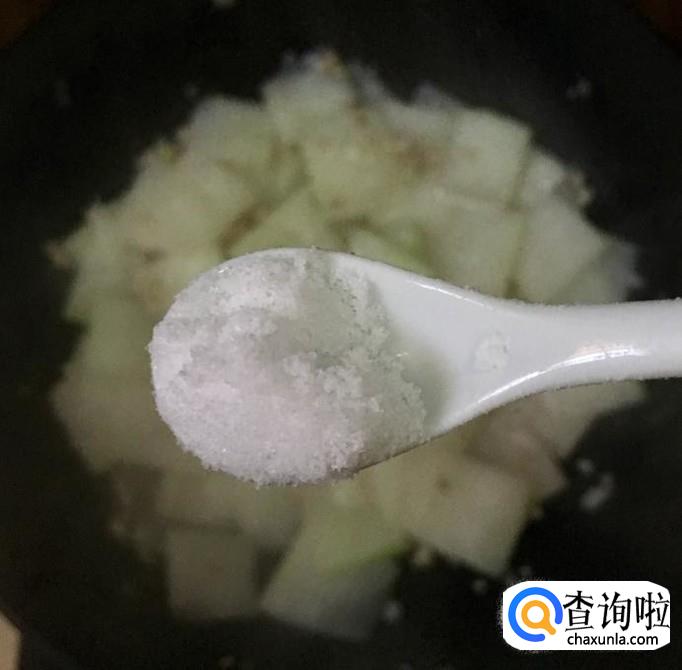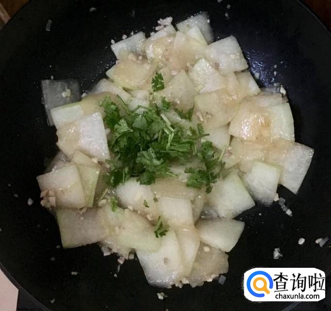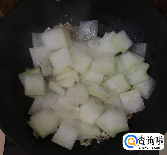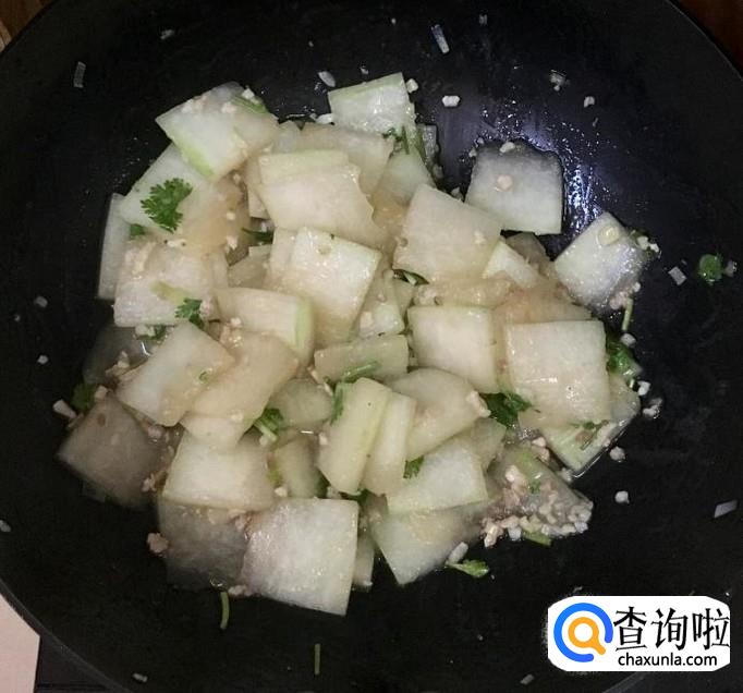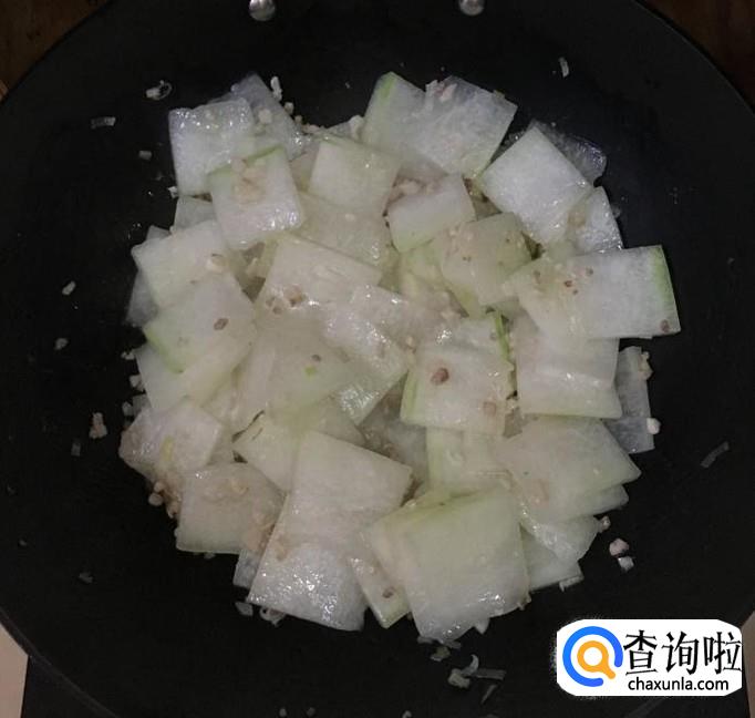 倒入冬瓜片旺火翻炒均匀