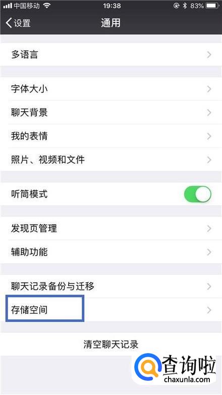 找到存储空间并点击它,如下图所示。