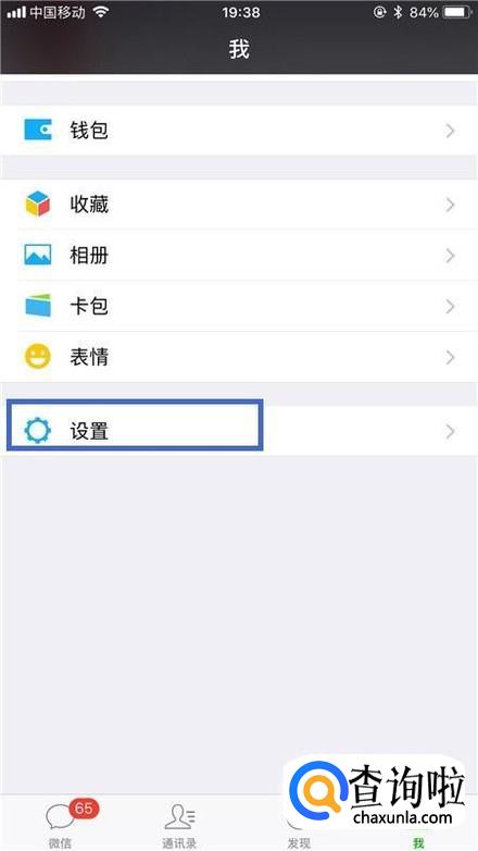点击微信中的设置,如下图所示。