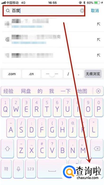 接着输入百度,并点击前往,如下图所示。