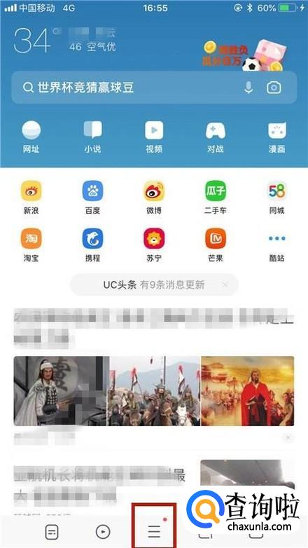 首先在我们的手机桌面上找到uc浏览器并点击它,如下图所示。