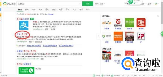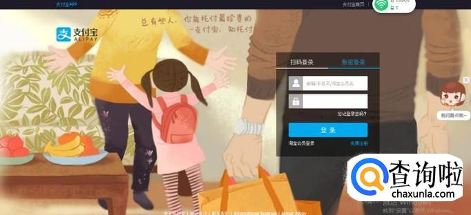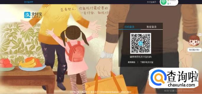 在浏览器中输入支付宝,再使用扫码或账号登陆的方式登陆支付宝账号,如图