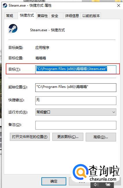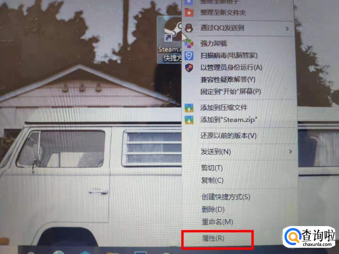 鼠标左击Steam的快捷方式。弹出来的对话框,点击属性。