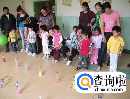 玩法:每组家庭发五个圈,家庭的任何一位成员都可以参与,站在指定位置上,把手里的套圈套向前面的瓶子里。哪组家庭套得多哪组就获胜。