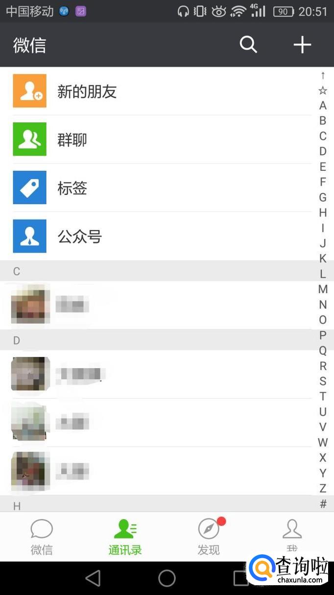 打开登录进入微信主页面,在页面最下方,点击通讯录。