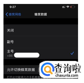 如果我们想要更改上网的号码,请在「设置-蜂窝网络-蜂窝数据」中选择即可,如图所示。