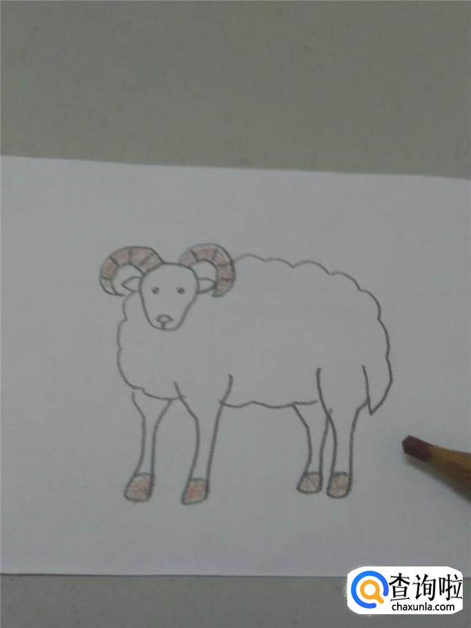 最后用棕色涂羊角和蹄子,羊就画完了。