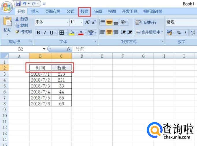 然后我们选中表格的单元格,如图所示,之后我们点击工具栏中的数据;