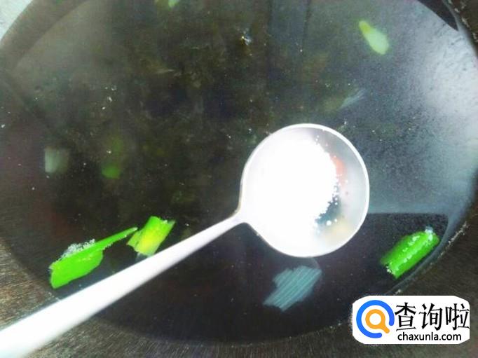 锅刷干净,直接倒进去清水,放上一些葱花,加上一勺子食盐,大火烧开。