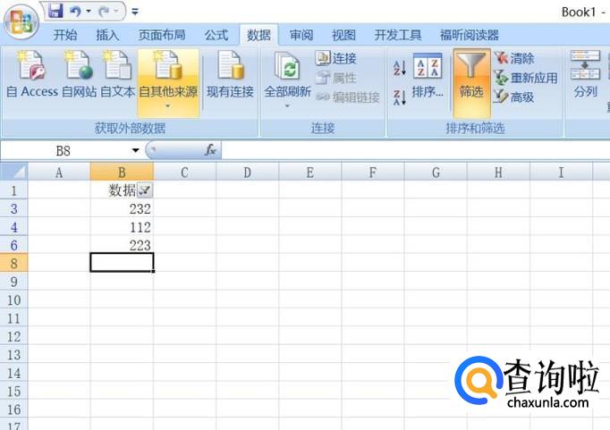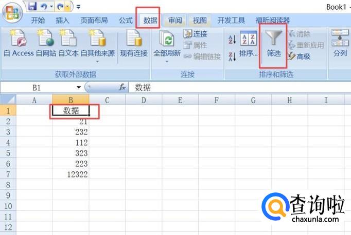 然后我们选中数据那个单元格,之后我们点击工具栏中的数据,之后点击筛选;