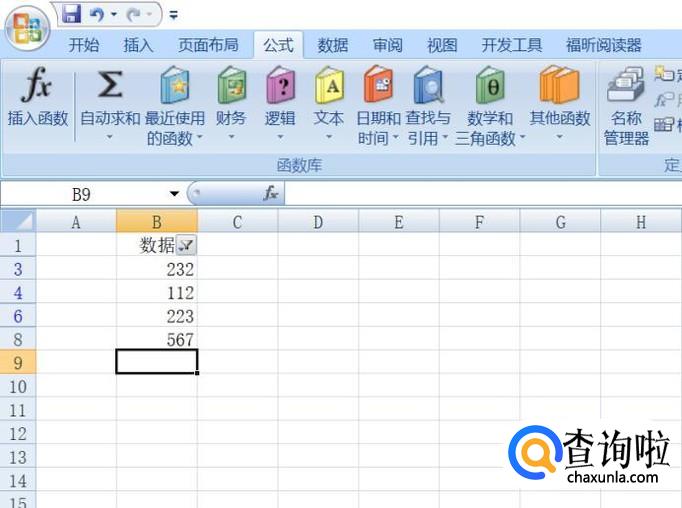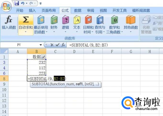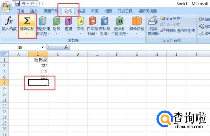 选择图示中单元格,然后点击公式,点击自动求和;