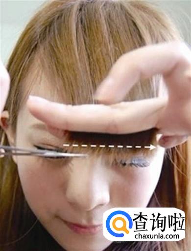 首先将刘海打湿,去理发店的时候理发师总是打湿头发剪刘海,然后在用梳子梳理整齐,对着镜子设计好自己想要的长度。