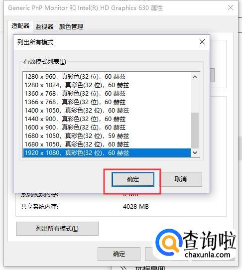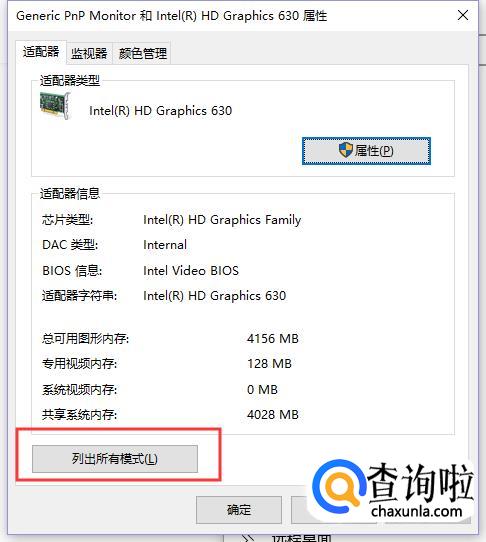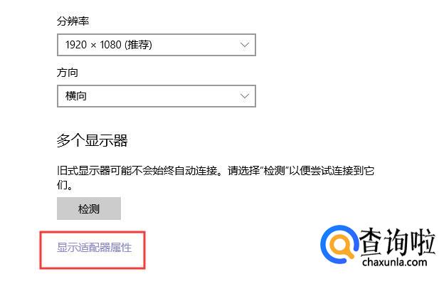 还可以查看所有适用的分辨率,点击“适配器属性”。
