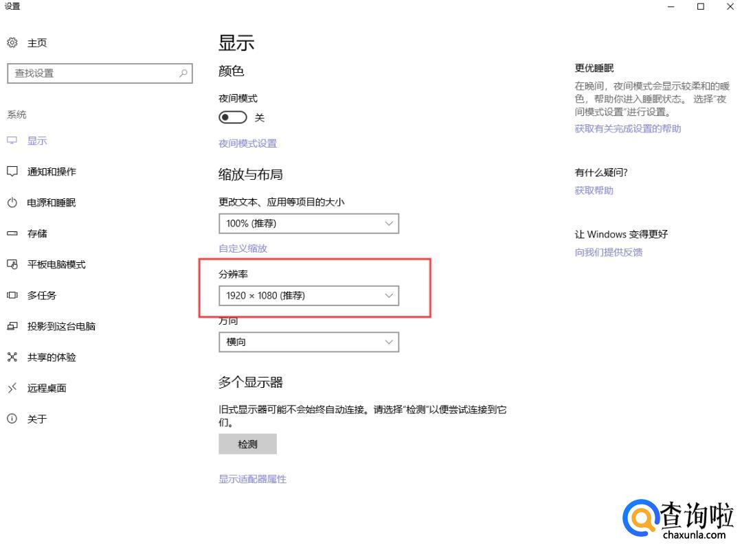 在弹出的显示设置弹窗中,可以看到有分辨率的设置。