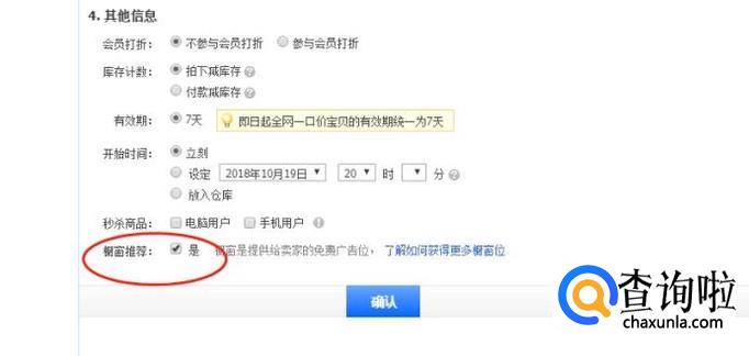 在“编辑详情”里拉到最下面,可以发布宝贝的蓝色按钮,在这里看我画红色圈圈的地方,这里可以选择橱窗推荐,一般是25个橱窗推荐,如果你店里宝贝过多了,25个橱窗推荐就要好好选择宝贝。之后点击发布宝贝就可以了。