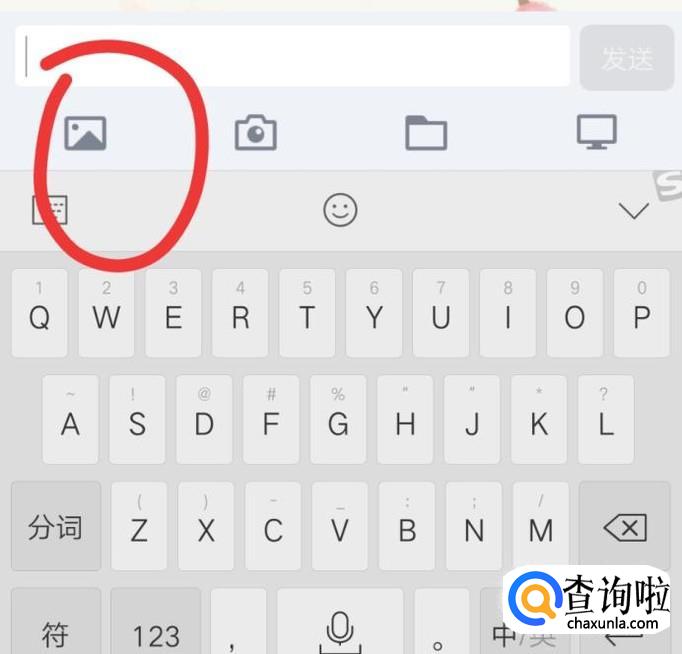 在对话框中,选中发送图片的符号,然后在相册里选中刚刚保存的图片,将图片发送过去。