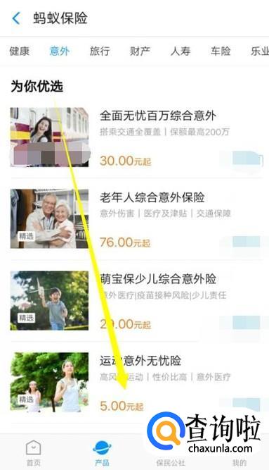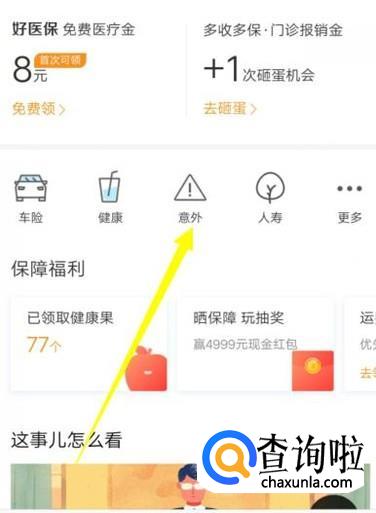 进入之后,找到自己想要购买的保险类别,点击并进入,在这以“意外险为例”。