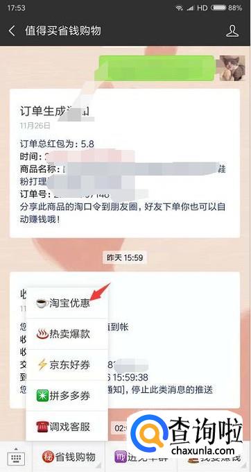 关注后在公众号的购物省钱里进入到淘宝好劵页面。