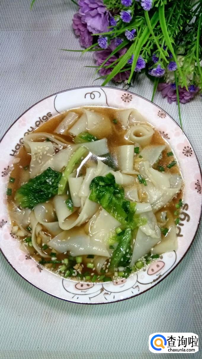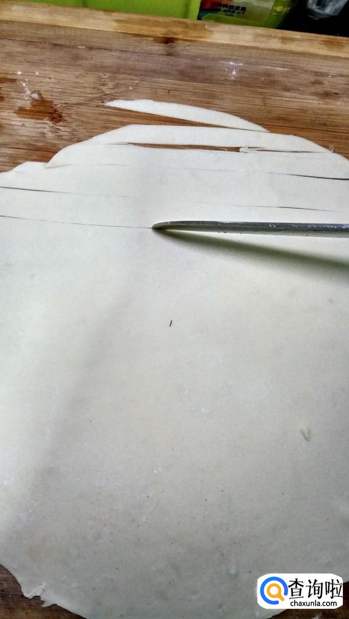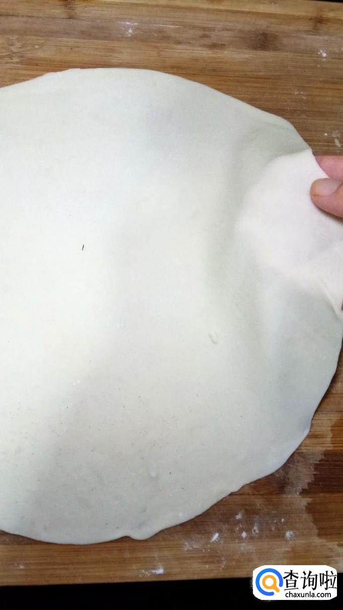 将面粉用温水,和成面团,醒20分钟,用擀面杖擀开,擀成薄片,越薄越好。