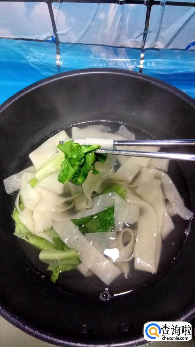 锅中烧开水,水开后,将做好的面条下入锅中,再加适量生菜,煮熟,自己做的面条很容易熟。