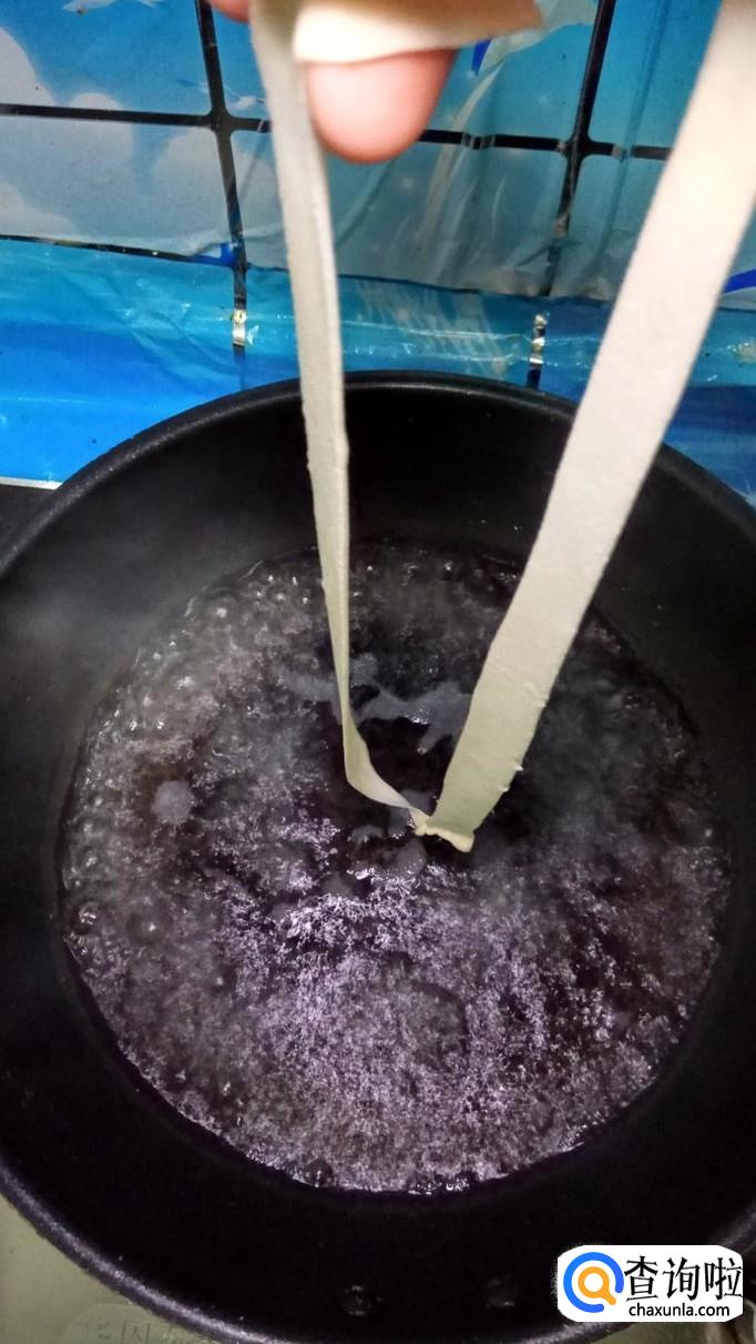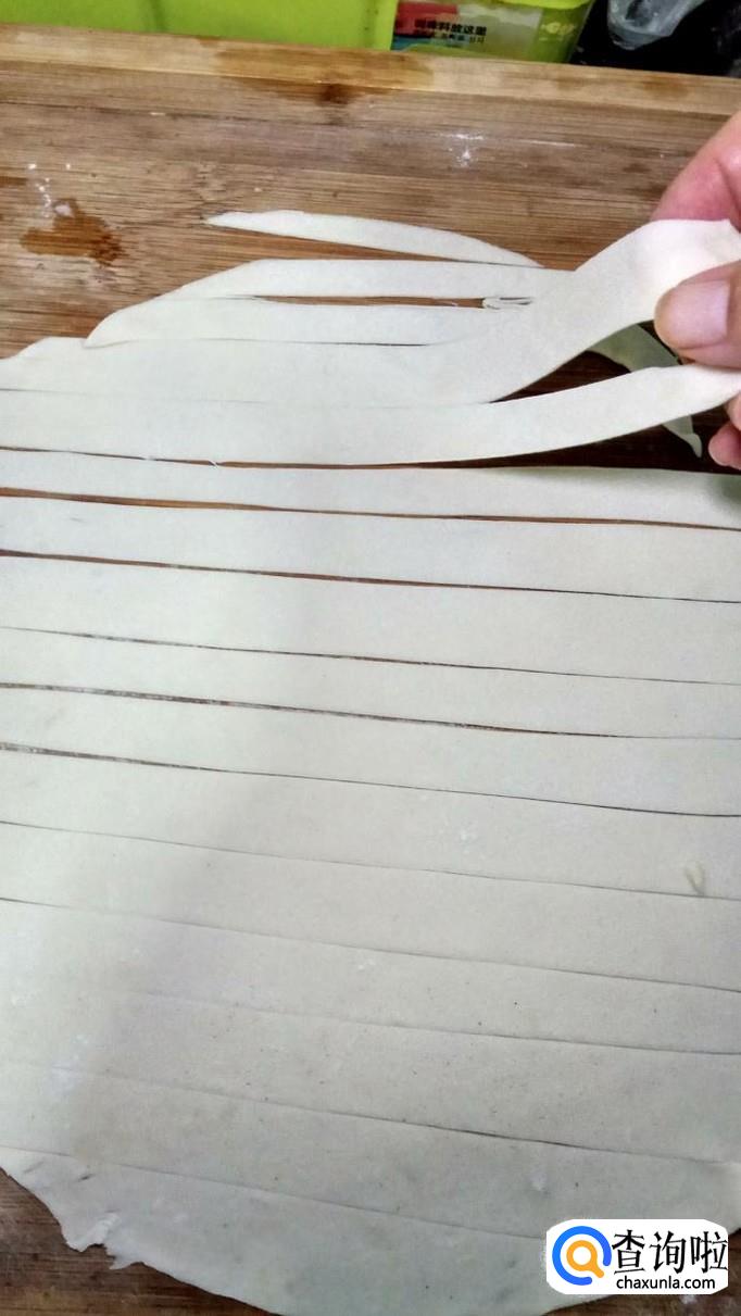 用刀劈成面条,可以稍微宽一些,这样口感非常好。