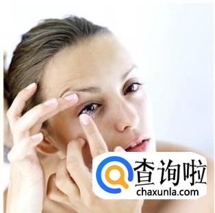 用左手扒拉着一侧眼睛的上下眼皮,然后将正面向上的美瞳从下往上放进眼睛里。