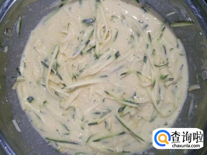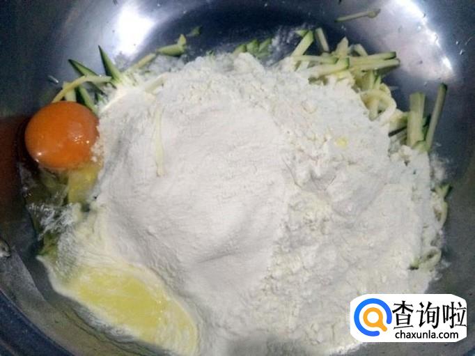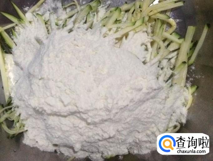 在嫩南瓜丝里加入适量面粉。