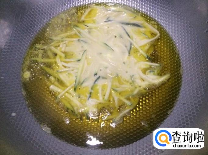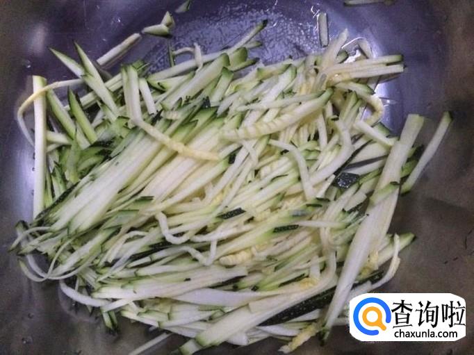 将嫩南瓜切成细丝。