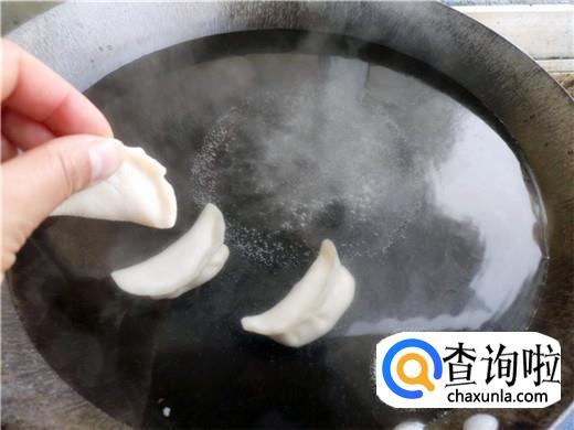 煮饺子时首先要烧一锅开水,饺子下进开水里,铲子翻动饺子,盖锅煮饺子,添加一碗凉水,再次煮开并盛出饺子即可。