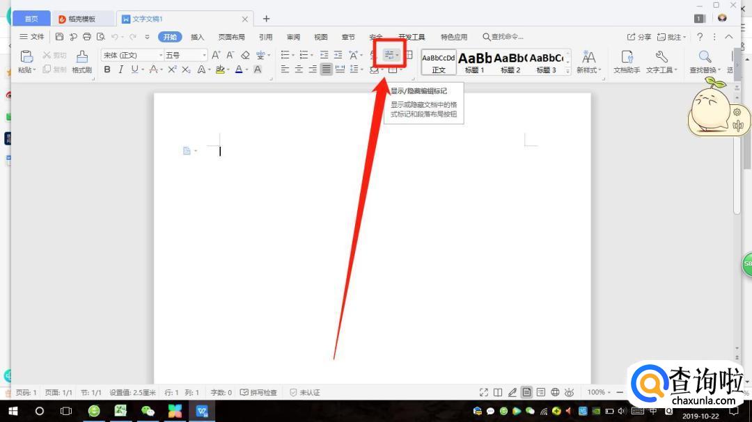 然后在上方工具栏上找到“段落标记”的图标并点击。