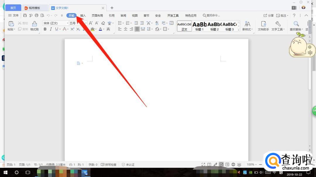 首先我们在电脑上打开wps2019版本,点击菜单栏上的“开始”菜单项。