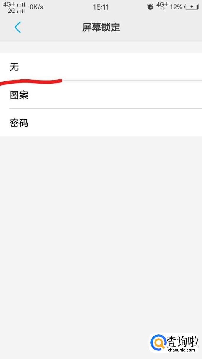 最后,点击“屏幕锁定”,再次输入自己的锁屏密码,点击“无”即可。