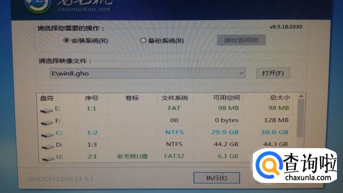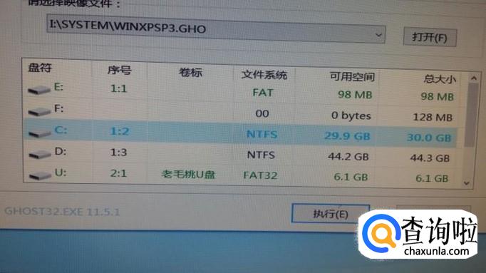 再在下面选中C盘,系统就是安装在这里,所以不要选错,点下面的“执行”。