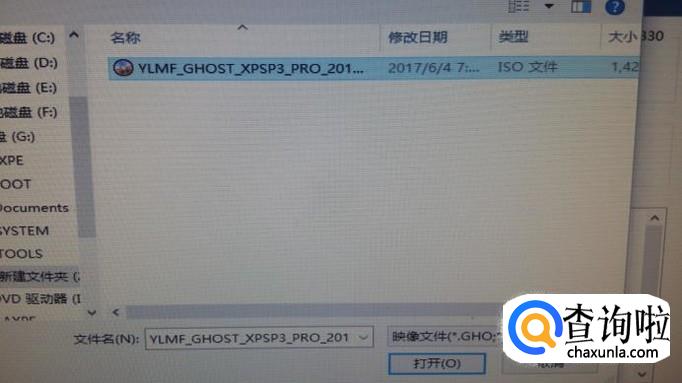 在软件界面里点击“打开”,找到提前复制在U盘里的XP安装文件,添加进去。