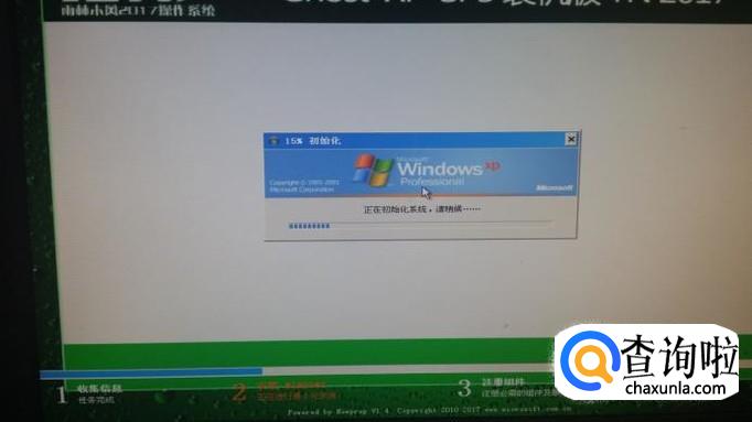 重启后,开始自动安装XP系统,首先是初始化系统。