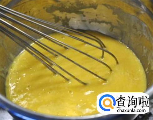 鸡蛋液里加上白糖、酸奶搅拌均匀,再加上一点面粉,让其变成糊糊,用打蛋器打均匀。