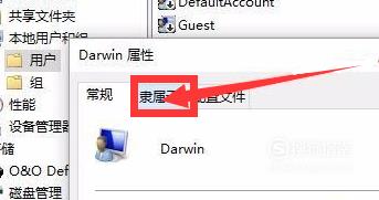 进入【Darwin属性】的页面后,查看一下【Darwin】用户隶属的权限组别。