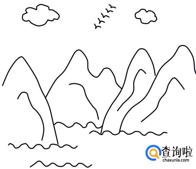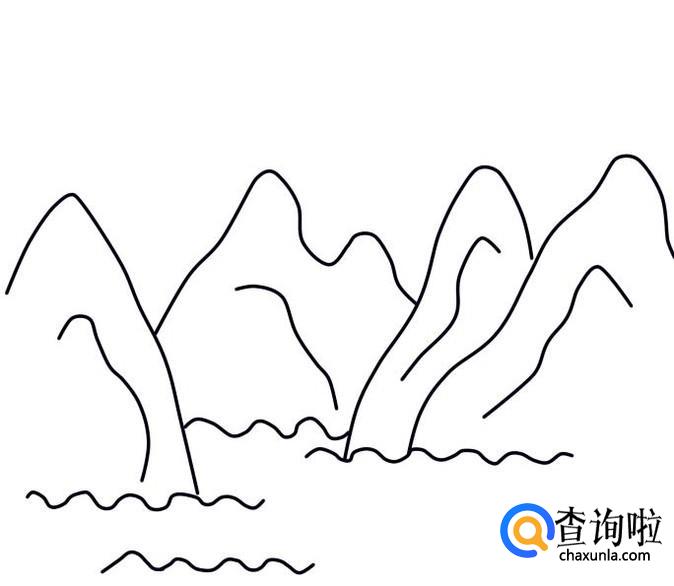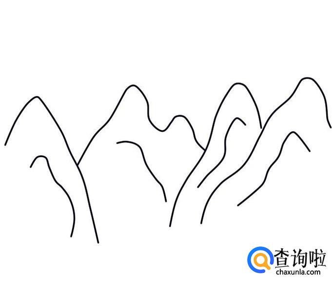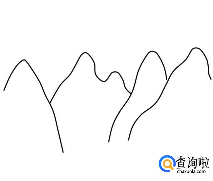 在这座山的右边,再画三条不同弧度的曲线,表示另外的三座山。
