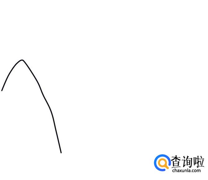 先在纸的左铡画一个窝头状的曲线,表示一座山。