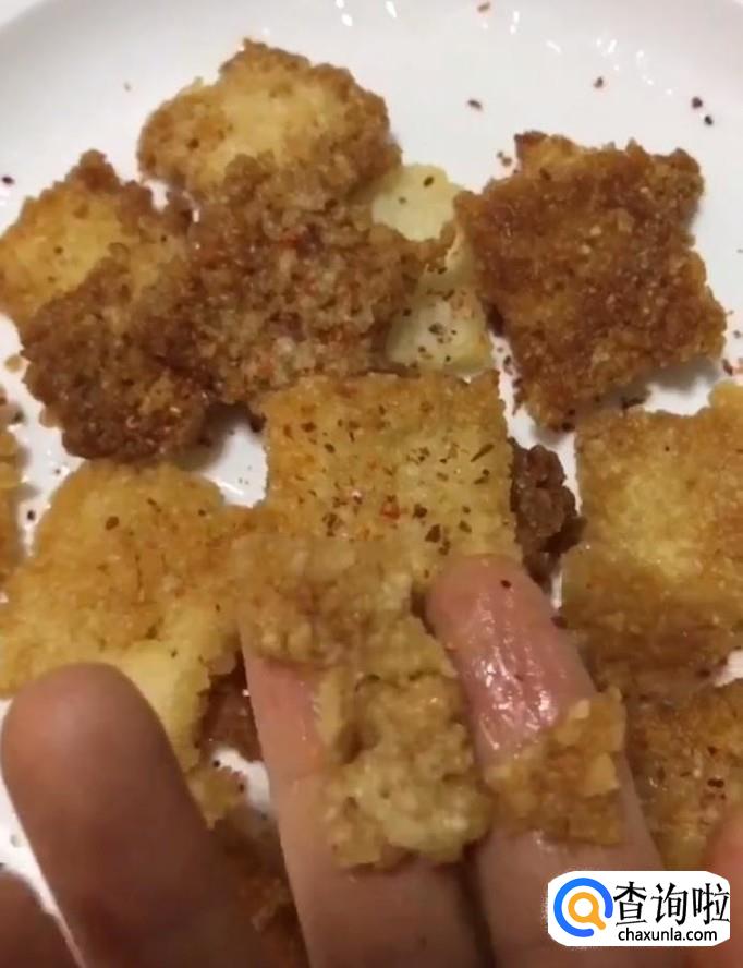 最后放入盘中,撒上一些椒盐粉,辣椒粉,香酥美味的锅巴就制作完成啦!