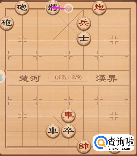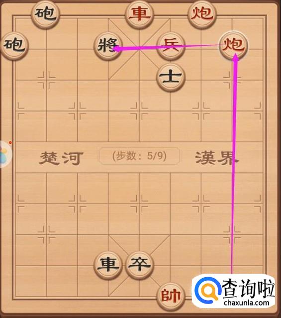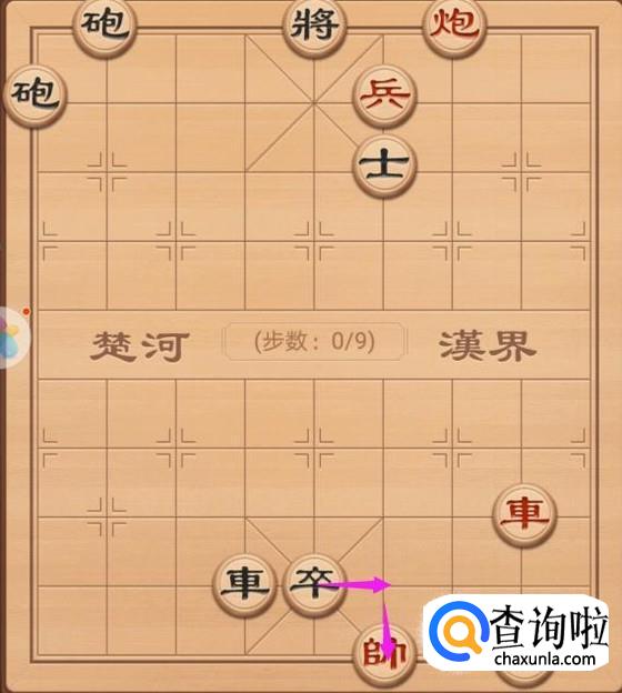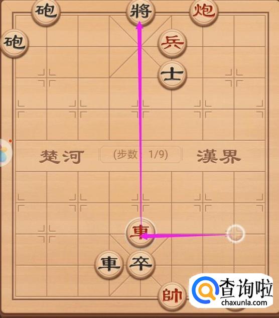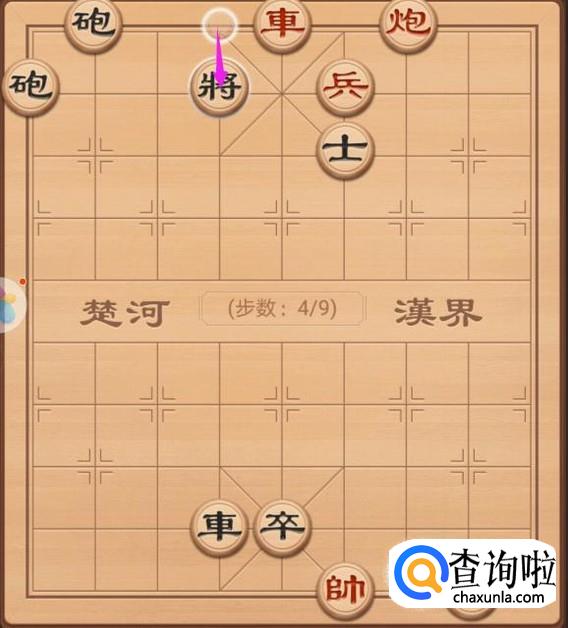 这里,我们就是来看看红方的第四步走法,这里还是使用车将军,只需要车左走一步就好了,如图所示。