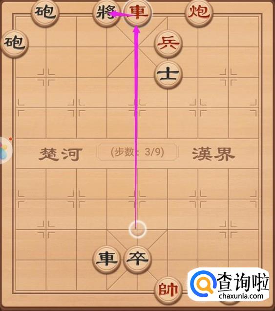 这里的话,红方假如要获得胜利,就需要先走,且需要将军,所以就是车左走3步,将军,如图所示。