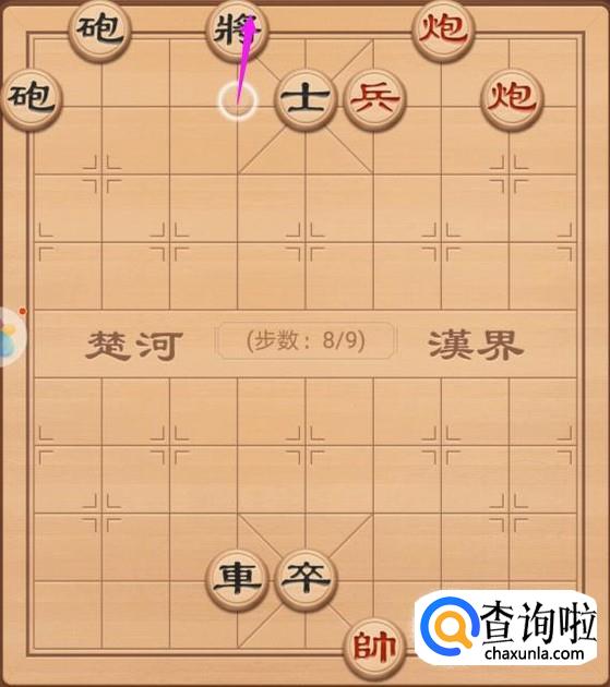 我们这里的话就是来看看红方的第三步走法,红方这里的话就是跑炮上走8步,进行将军,如图所示。
