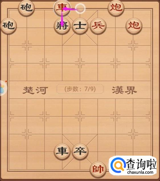 我们就来看红方走的第二步,红方这里的话就只需要车上走7步,就可以再次进行车将军,如图所示。