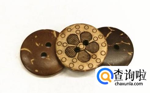 椰子壳纽扣,此纽扣的特点是颜色通常为浅棕色至深棕色。正面和背面具有不同的颜色,纽扣表面分布有斑点或丝状静脉。