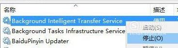 在Background Intelligent Transfer Service上单击右键,选择 停止 即可!