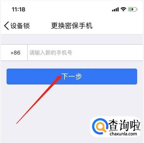 在更换密保手机界面,输入新的手机号码,点击下一步,输入验证码确认即可。