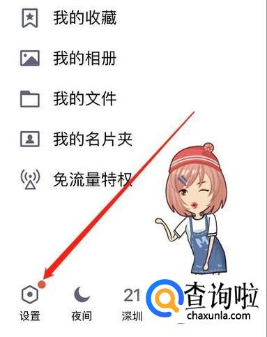 打开手机登录QQ,主屏幕右滑点击进入设置选项。