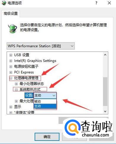 在这里我们滑动滑块,找到处理器电源管理-系统散热方式。这样就可以设置显卡转动方式为主动或者是被动了。