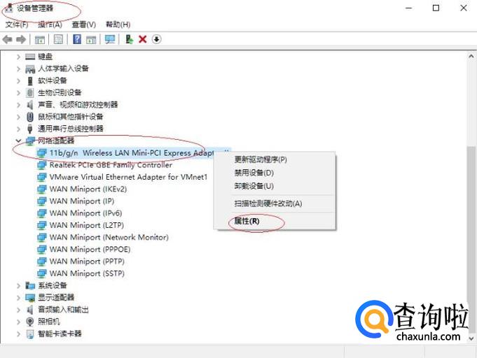 如图所示,鼠标右击"11b/g/n Wireless LAN Mini-PCI Express Adapter Ⅱ"项。弹出快捷菜单,选择"属性"。